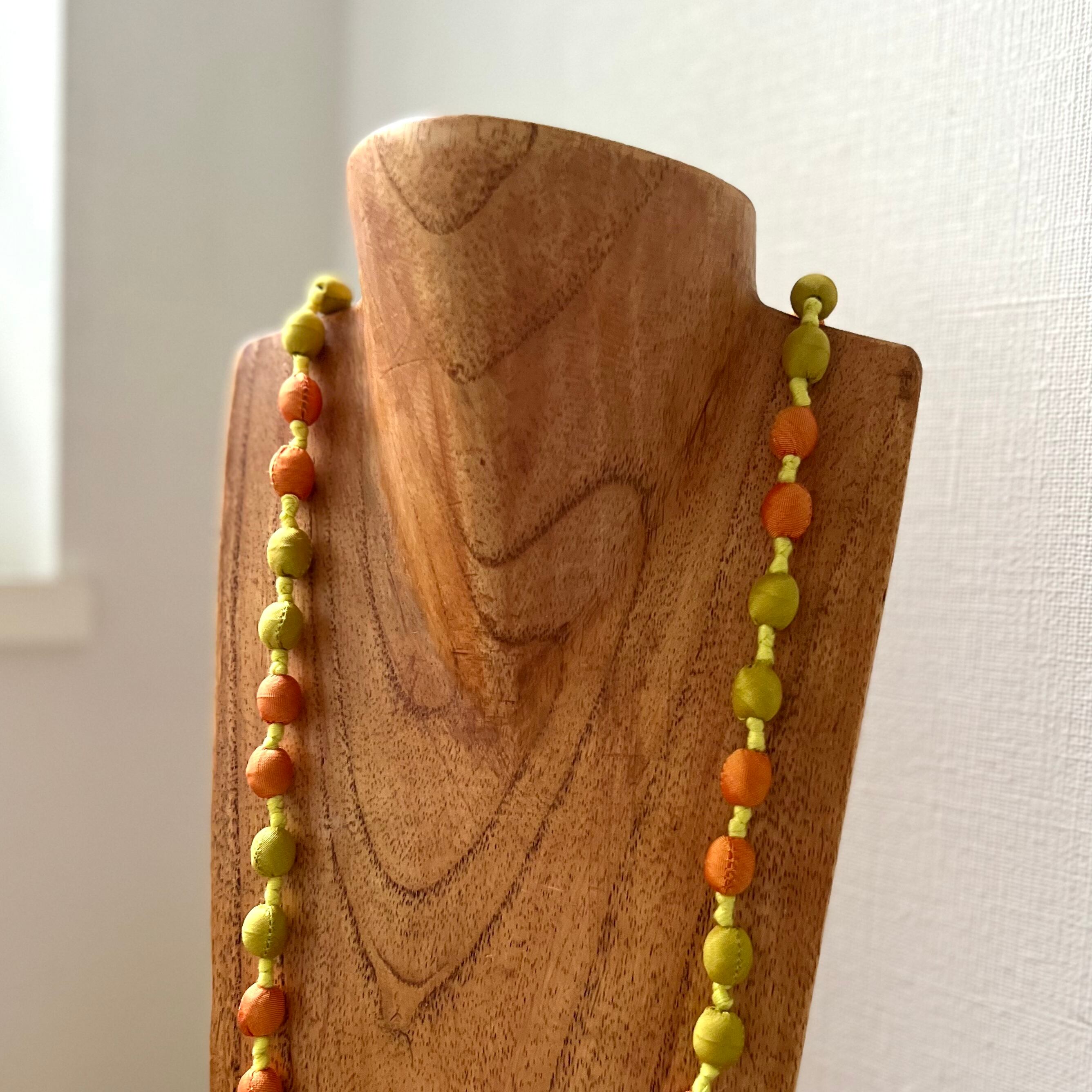 カンボジアの女性や女の子達の自立を支援するNPO団体が制作するシルクのネックレス。美しいシルクの発色とカンボジアの女性達の丁寧な手仕事から生み出されたネックレスは着けるだけで元気になれます。軽いことも皆様に喜ばれています。