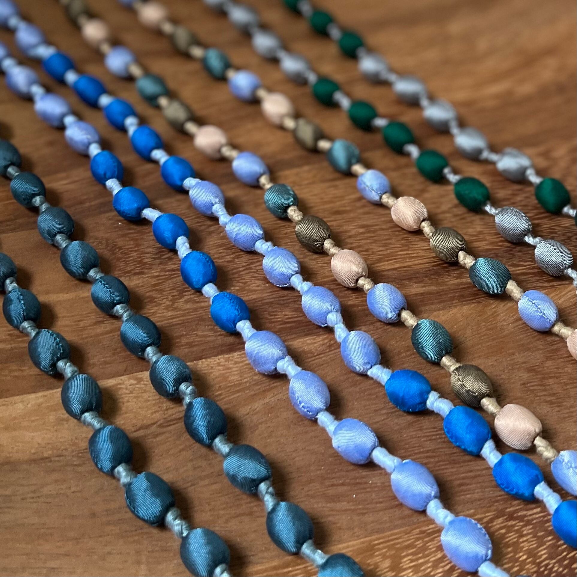 カンボジアの女性や女の子達の自立を支援するNPO団体が制作するシルクのネックレス。美しいシルクの発色とカンボジアの女性達の丁寧な手仕事から生み出されたネックレスは着けるだけで元気になれます。軽いことも皆様に喜ばれています。