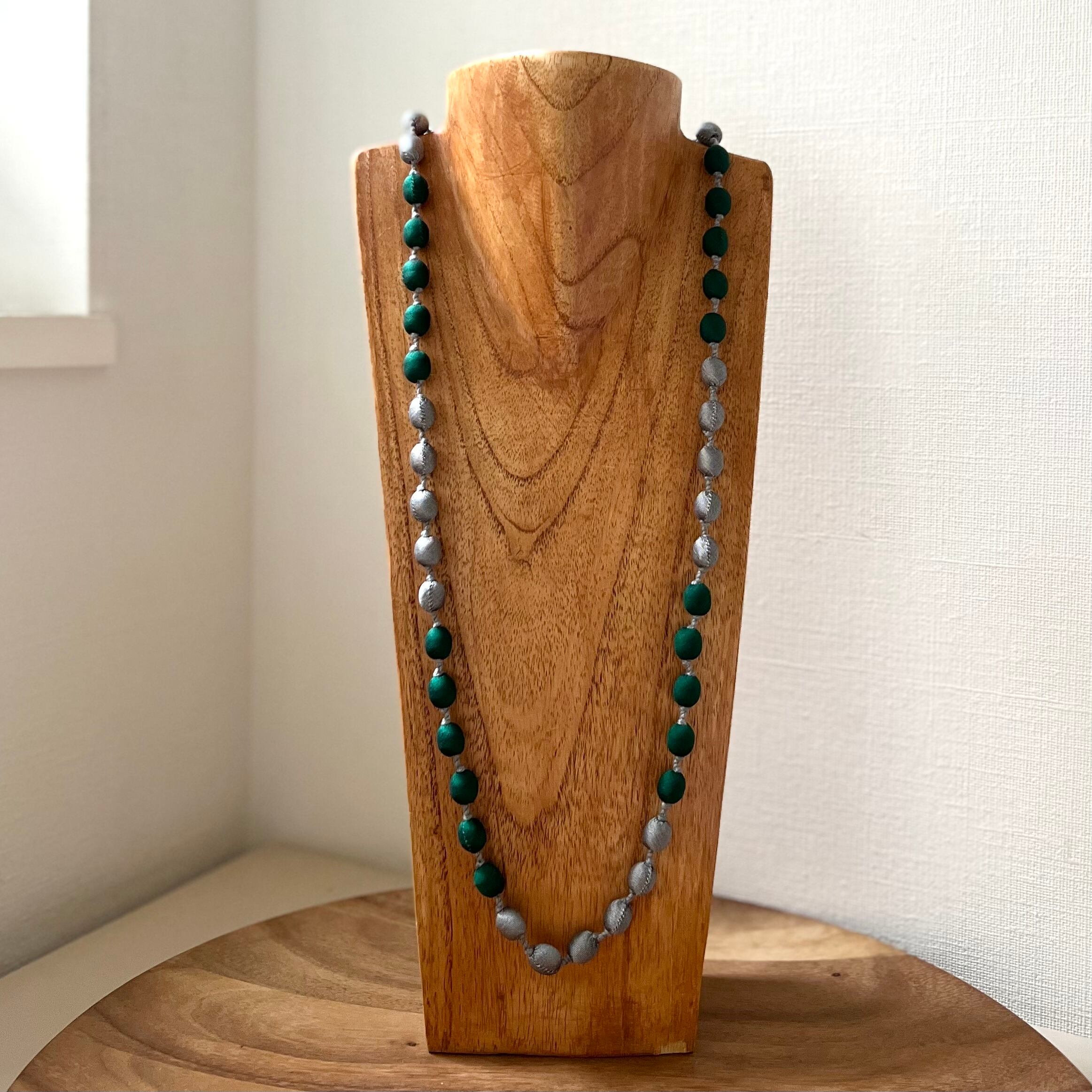 カンボジアの女性や女の子達の自立を支援するNPO団体が制作するシルクのネックレス。美しいシルクの発色とカンボジアの女性達の丁寧な手仕事から生み出されたネックレスは着けるだけで元気になれます。軽いことも皆様に喜ばれています。